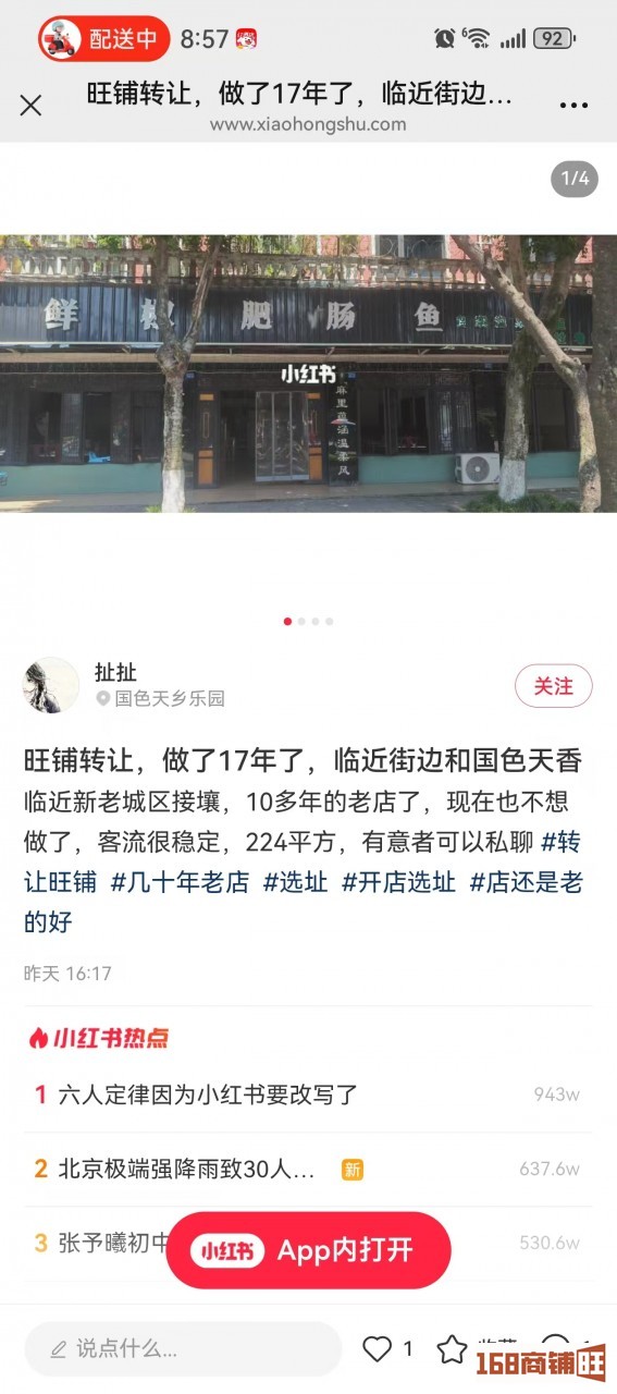 旺鋪轉(zhuǎn)讓,做了17年了,臨近街邊和國(guó)色天香